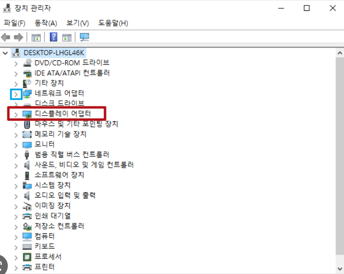 1. 장치관리자화면 / 디스플레이어댑터를 띄워놓고 시작하세요.