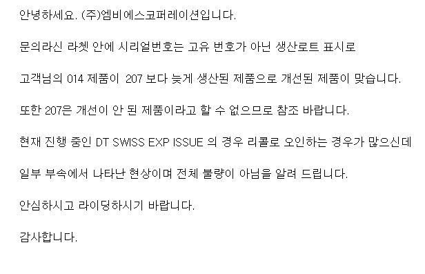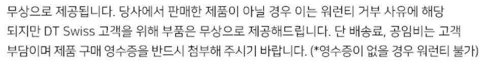 회사 사정은 이해하겠는데, DT SWISS 본사에서도 인정한 이슈 = 잘못인정 = 시리얼해당 조건없는 AS